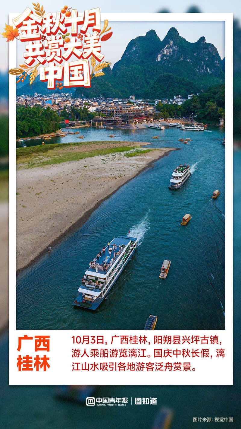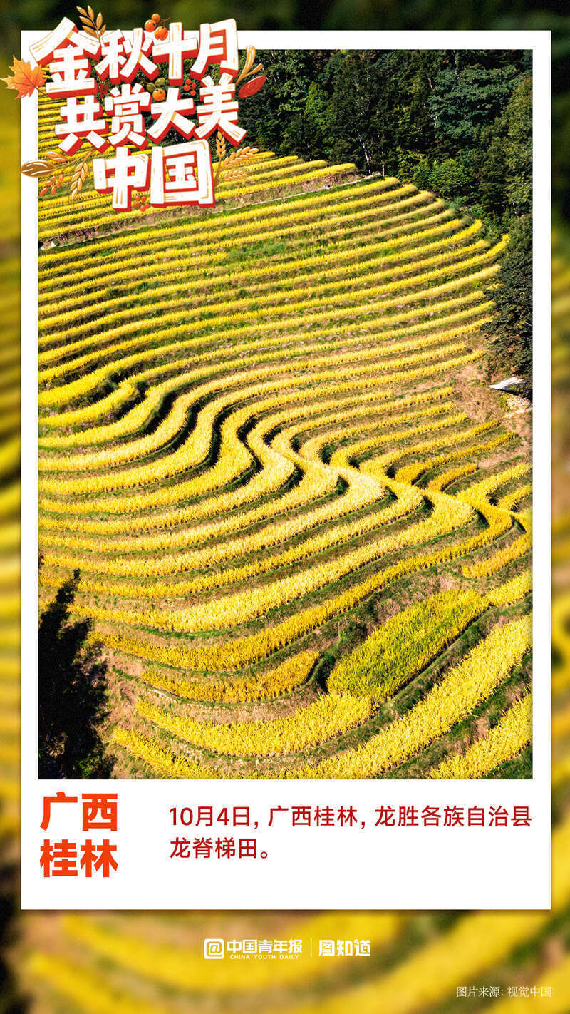 登泰山之巅叹“一览众山小”,游漓江两岸赞“山水甲天下”。“十四五”期间,我国共完成国土绿化面积5.49亿亩,森林覆盖率由23.04%提高到25%以上,成为全球增绿最多最快的国家。金秋十月,共赏大美中国!